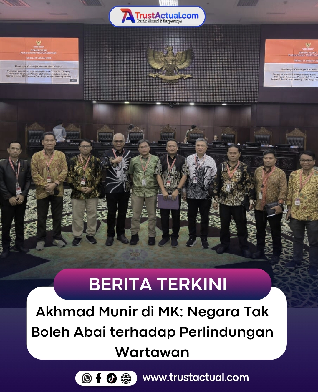 “Pasal 8 UU Pers adalah jaminan konstitusional bagi wartawan dalam menjalankan tugas jurnalistik. Negara berkewajiban memastikan perlindungan itu benar-benar dirasakan di lapangan,” ujar Munir di hadapan majelis hakim MK.