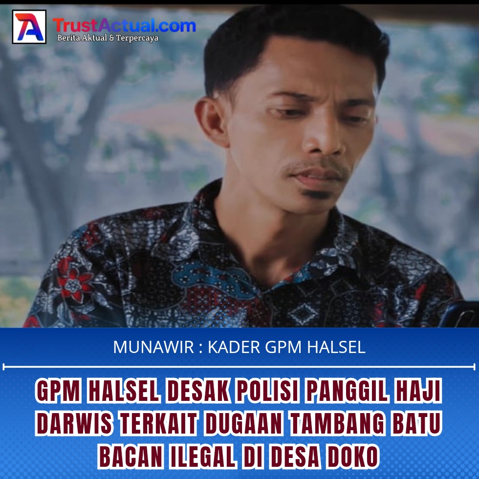 HALSEL, Trustactual.com — Gerakan Pemuda Marhaenis (GPM) Halmahera Selatan mendesak Polres Halmahera Selatan dan Polda Maluku Utara segera memanggil Haji Darwis atas dugaan pengelolaan tambang batu Bacan ilegal di Desa Doko. Desakan ini disampaikan kader GPM, Bung Nawir, menyusul informasi beroperasinya kembali aktivitas pertambangan tanpa izin resmi.