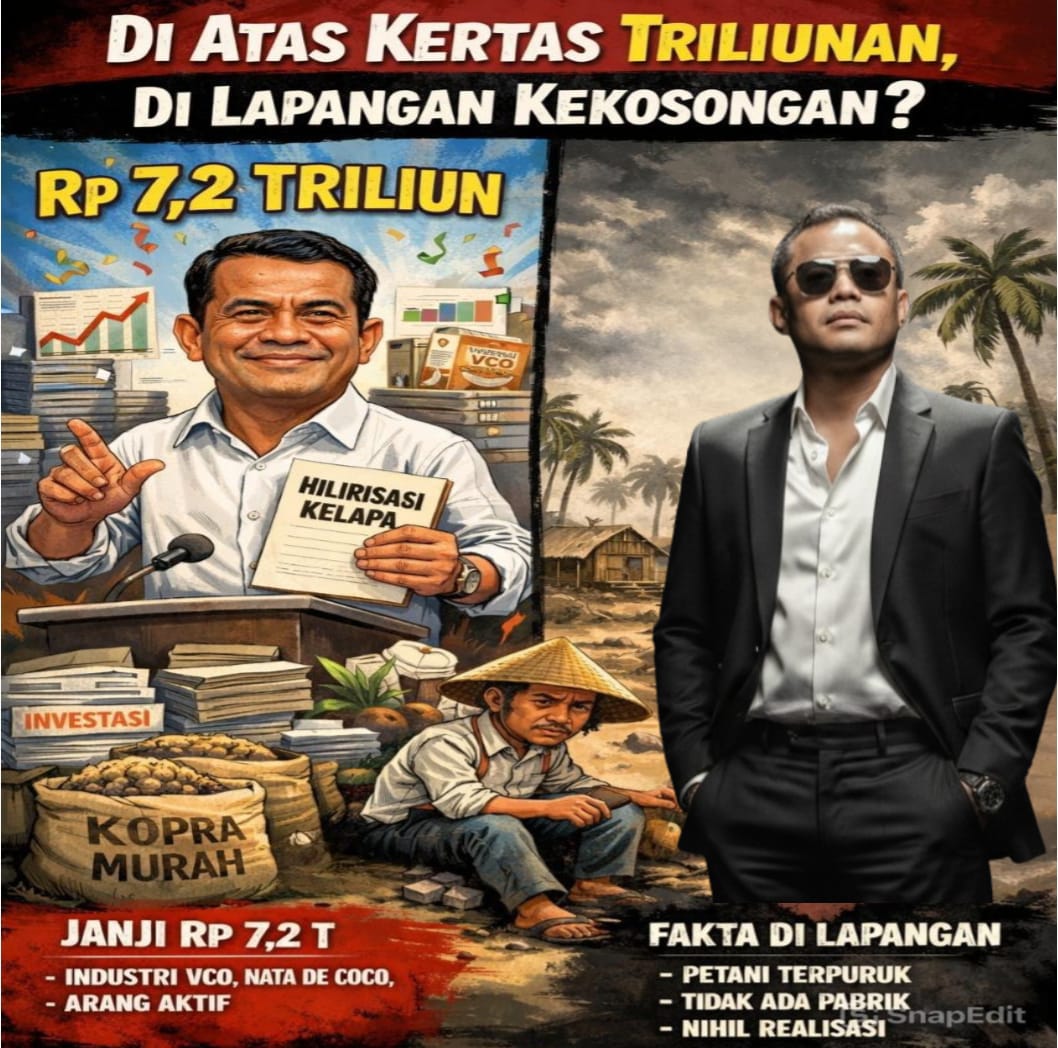 JAKARTA, Trustactual.com – Barisan Rakyat Halmahera Selatan (BARAH) menilai klaim investasi Rp7,2 triliun untuk hilirisasi kelapa yang disampaikan dalam pertemuan Bupati Halmahera Selatan, Hasan Ali Bassam Kasuba, bersama Menteri Pertanian RI Andi Amran Sulaiman dan KOPEK pada 25 Mei 2025 hanya berhenti sebagai angka besar tanpa realisasi nyata di Halmahera Selatan.