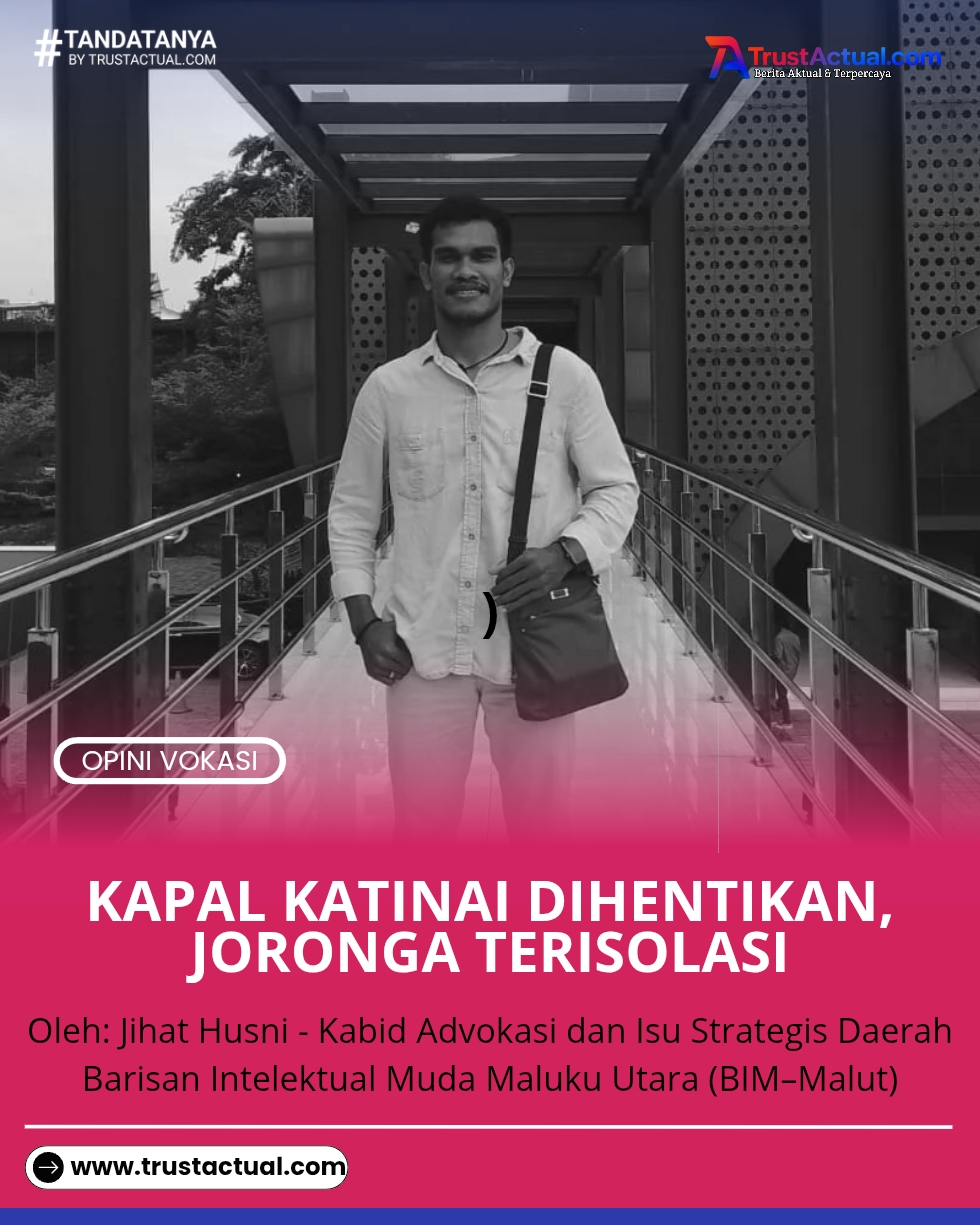 HALSEL, Trustactual.com – Transportasi laut bagi masyarakat Kepulauan Joronga kini berada di titik nadir. Kapal Katinai, yang menjadi urat nadi mobilitas warga, secara mendadak dihentikan operasionalnya oleh Dinas Perhubungan (Dishub) Pelabuhan Babang, Bacan Timur.