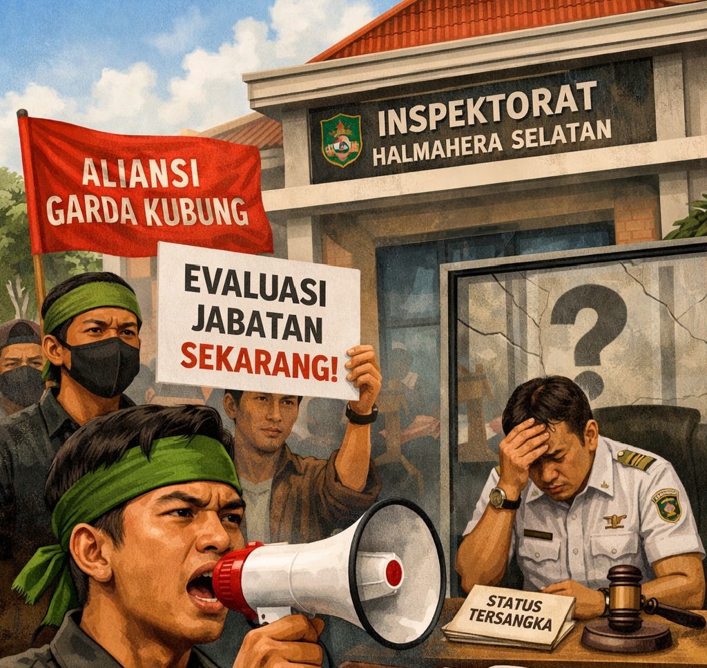 TRUSTACTUAL.COM – Aliansi Garda Kubung secara tegas mendesak Bupati Halmahera Selatan, Hasan Ali Bassam Kasuba, untuk segera mencopot Kepala Inspektorat Kabupaten Halmahera Selatan yang telah ditetapkan sebagai tersangka dalam kasus dugaan penganiayaan terhadap seorang aktivis saat aksi demonstrasi pada 15 Mei 2025.