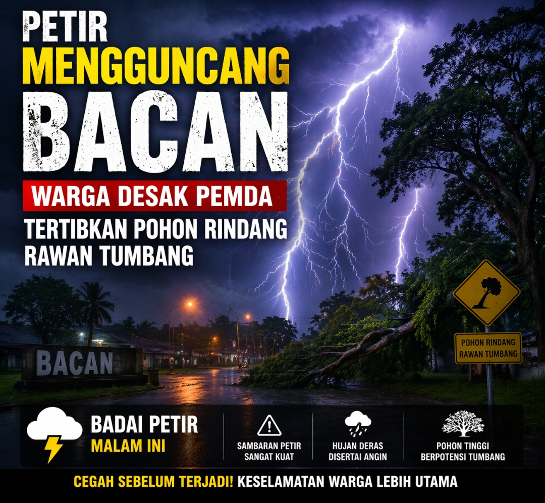 “Suara petirnya sangat kuat, dan kilatnya seperti menyambar berulang. Kami takut kalau sampai kena pohon besar di dekat rumah, di hidayat & Tomori.” ujar salah satu warga Bacan.