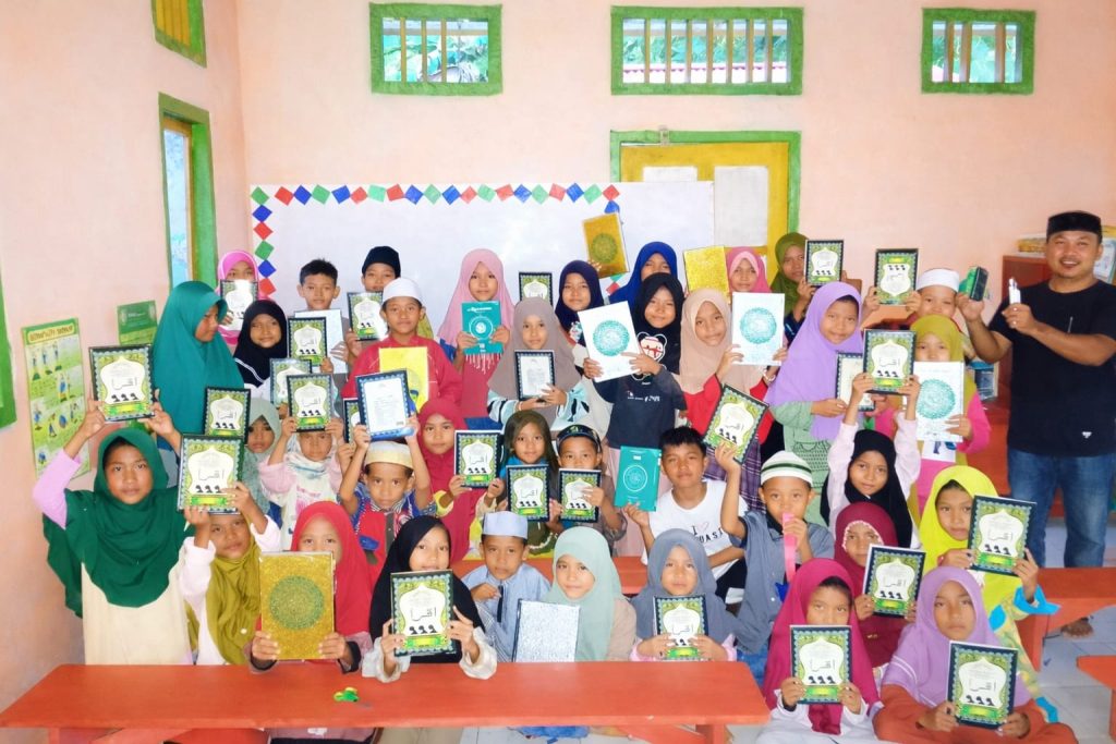 Penyaluran bantuan dilakukan langsung di TPQ Baiturrahman dengan melibatkan pengurus pemuda, serta pengelola TPQ. Adapun total bantuan yang disalurkan meliputi 8 meja belajar, 1 lemari Al-Qur’an, 1 papan tulis, 40 buku Iqro, 25 Al-Qur’an, serta 10 tempelan doa-doa pendek.